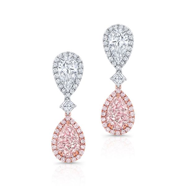 (615) 893-9162Pear Shape Pink and White Diamond Drop Earrings